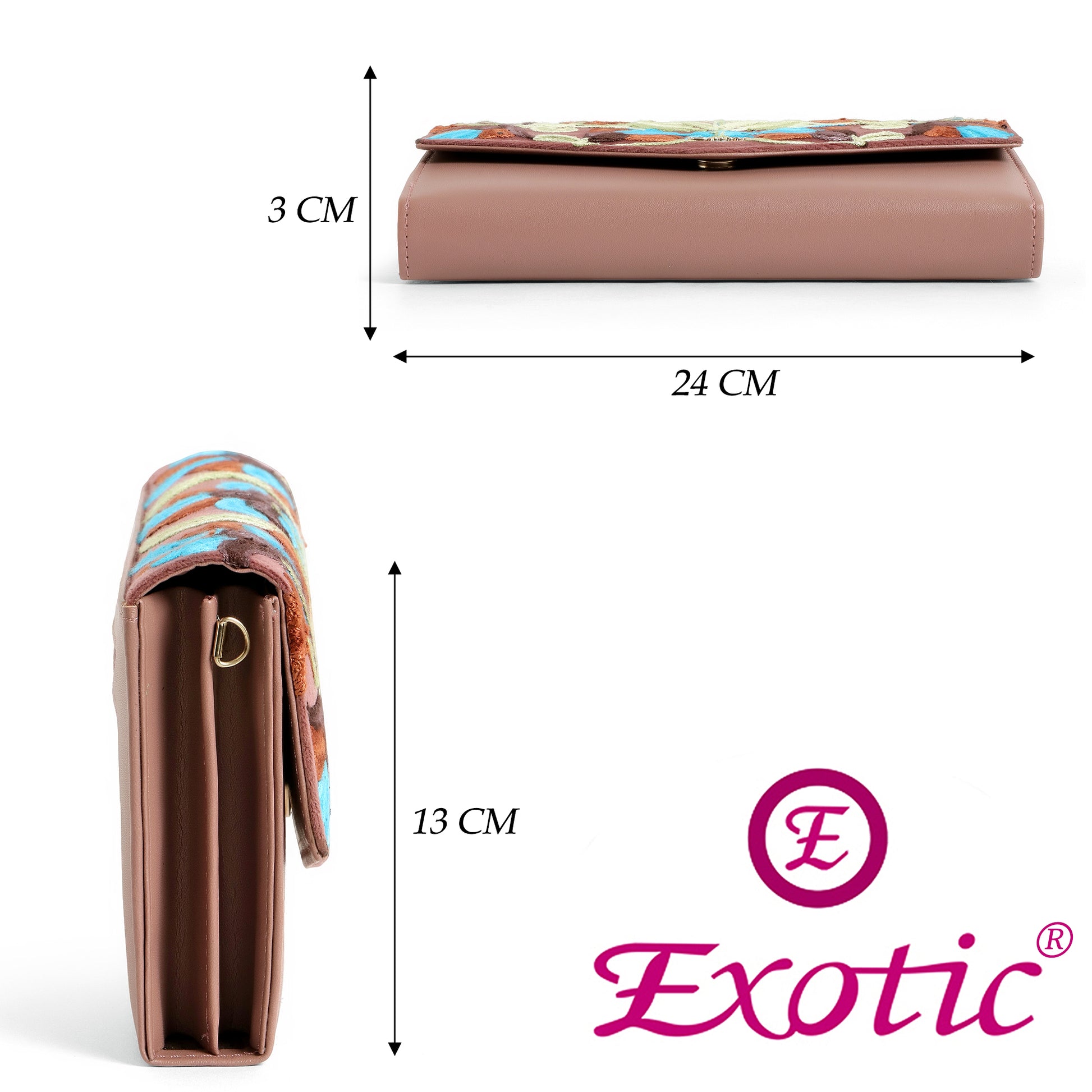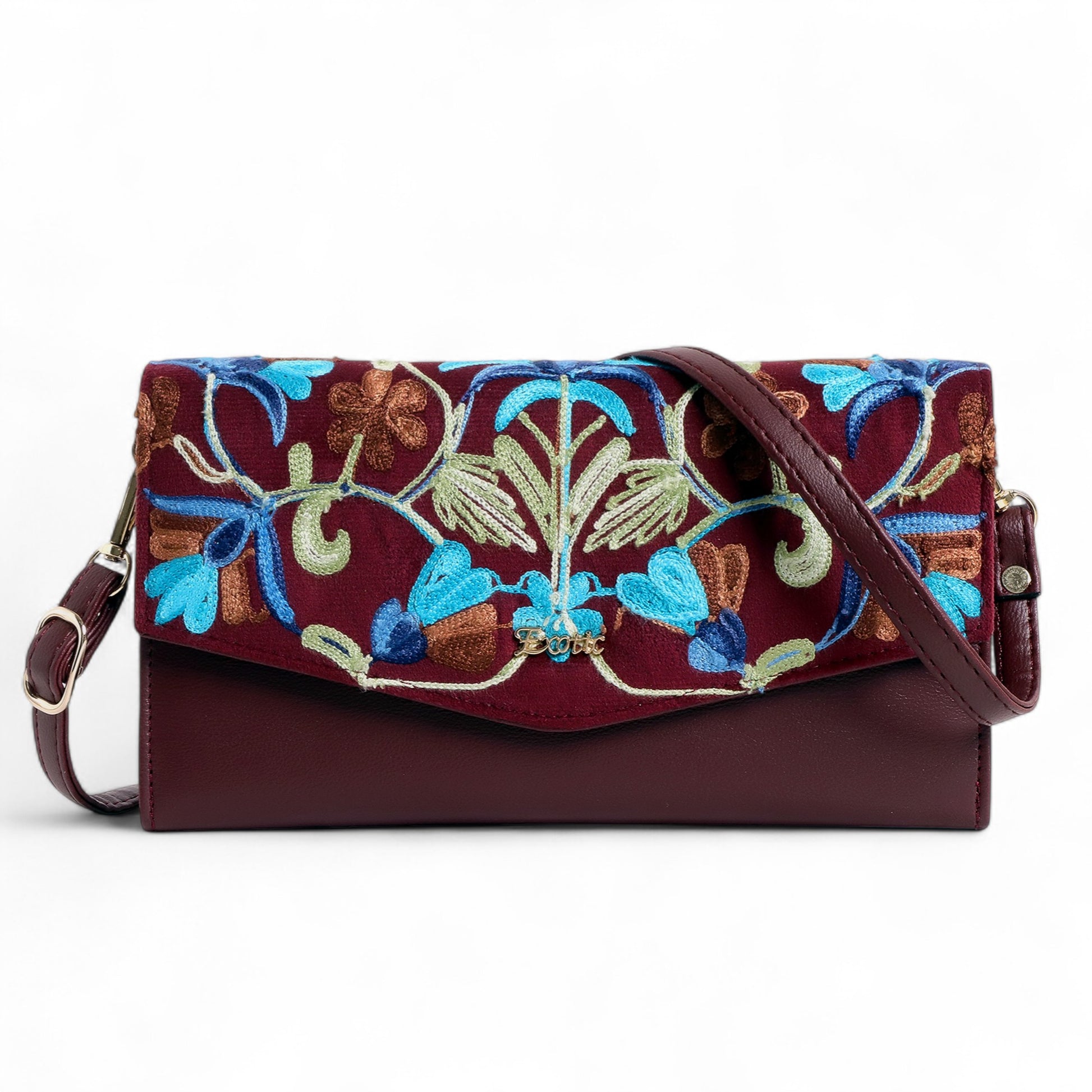 Premium Floral Embroidery: Beautiful multicolor embroidered floral pattern on the front flap for a refined and feminine look.